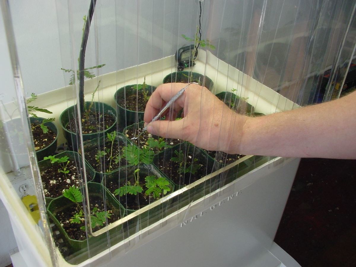 This interactive greenhouse of 'sensitive plants' was created for the Psychobotany show curated by Aaron Gach at Machine Project in Los Angeles. Visitors were encouraged to experiment with the plants and to record their observations in a lab notebook that I provided.