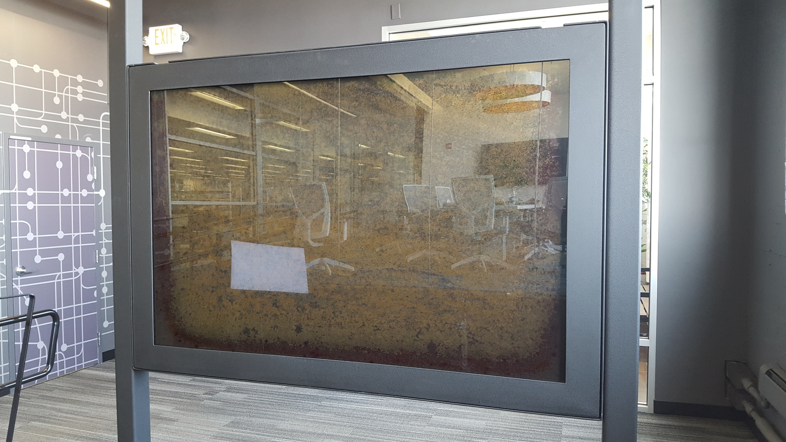 A custom acrylic tank and stand, commissioned by Gingko Bioworks, engineered by APROE and filled with mud onsite by yours truly. Watch the time lapse of bacterial growth over several weeks by Gingko staff.